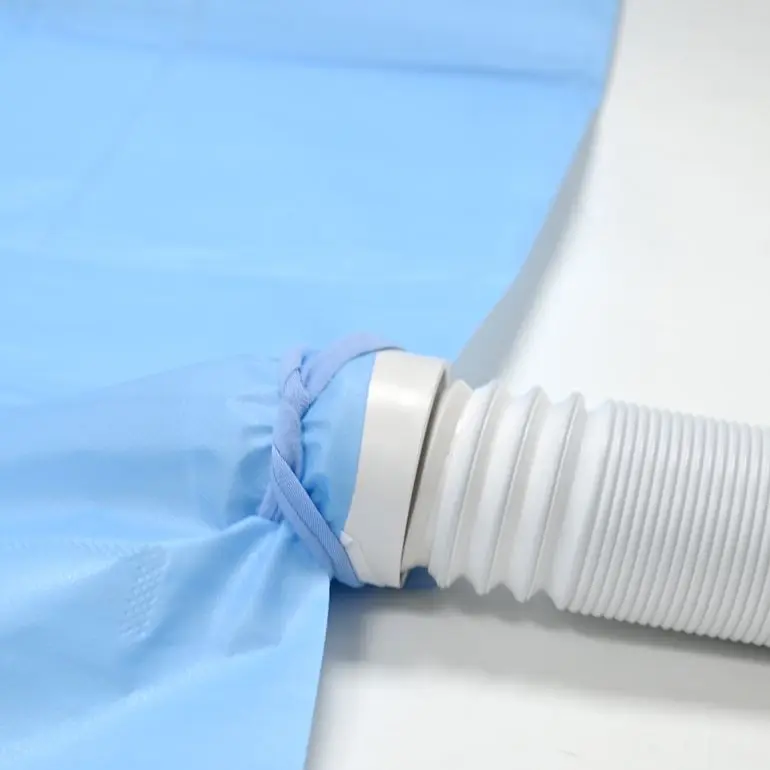 3. operate: open the blanket package, unhold the blanket, insert the nozzle into the inlet of the blanket, fasten the straps on