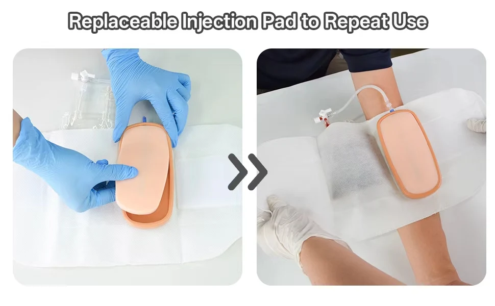 It provides a safe, cost-effective training environment for nursing students to master various injection techniques, including IV injection, IV catheter placement, venepuncture and phlebotomy. The wearable design and comprehensive accessories enhance practical operation experience, helping learners build confidence and improve operational proficiency, laying a solid foundation for clinical practice.