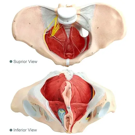 pelvic floor muscles. The intricately painted and numbered details of internal structures help learners visualize how all the