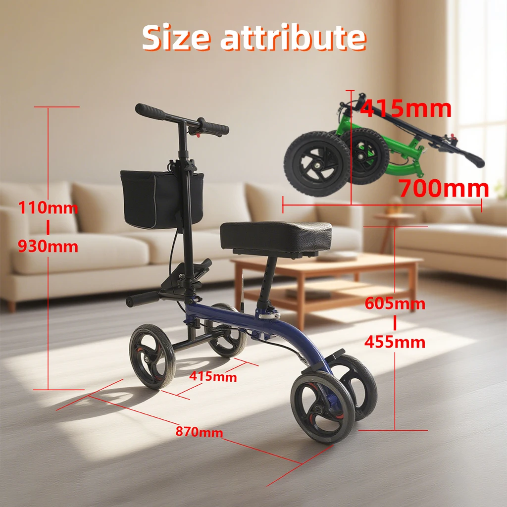 Knee Walker Scooter Convenient Adult Folding Walker for Leg Easy Mobility Aid Adults Disabled People Rehabilitation Equipment