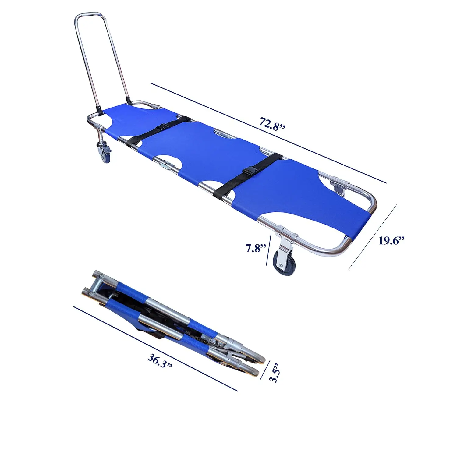High Quality Material: The folding stretcher is made of high-strength and lightweight aluminum alloy + Oxford cloth, which is waterproof and durable, easy to clean, and has a maximum load capacity of 350 lbs. The folding stretcher can be folded for storage and can be opened and stowed quickly and easily, and can be placed in the trunk of your car for easy portability and storage, making it easy to use in any situation! Safety Belt Design: The medical emergency folding portable stretcher stretcher is equipped with two high-quality safety belts on the chest and legs, which can fix the patient and ensure the stability of the stretcher lifting, providing more safety for the patient Multifunctional Design: The foldable portable stretcher is equipped with an aluminum push-pull rod, 2 two-way wheels, and 2 universal wheels with brakes. It is easy to push and pull, saving effort, making rescue work more convenient Product Specifications: Mobile stretcher using size: 72.8*19.6*7.8 inches, folding size: 36.3*19.6*3.5 inches, weight: 15 pounds