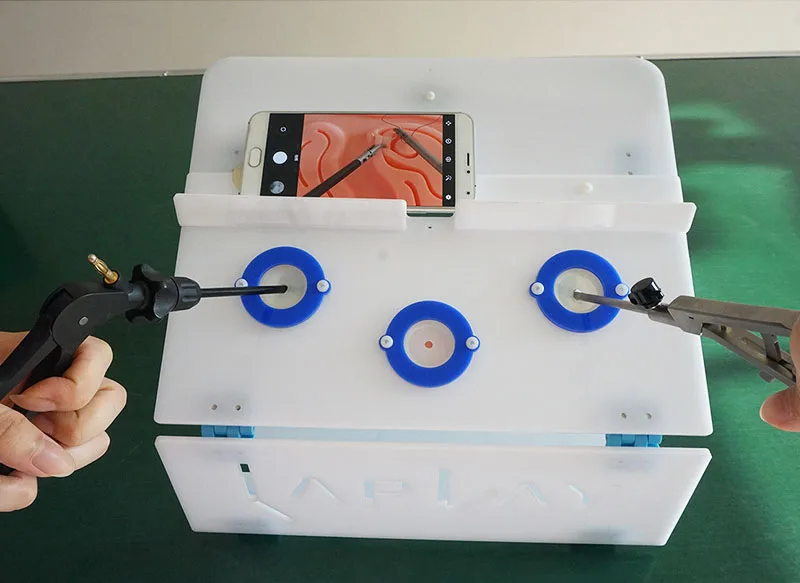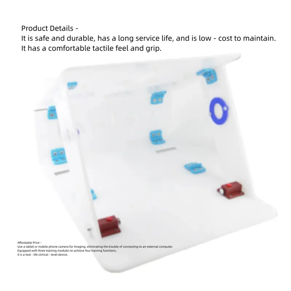 Features:1. Ergonomic box design, more comfortable operation and easy to carry during practice 2.LED light brightness multi-level adjustment 3. Intimate camera, no delay to adapt to a variety of camera equipment 4. Quality assurance, can be reused hundreds of times 5. Safe and durable, long service life, low maintenance cost, with comfortable sensitivity and mastery 6. The price is cheap, and the tablet or mobile phone camera is used to take the phase, eliminating the trouble of external computer 7. Equipped with three training modules to achieve four training functions, more training modules can be selected to enrich training content, such as wound suture module and intestinal anastomosis module, the product can be folded, small footprint, easy to carry
