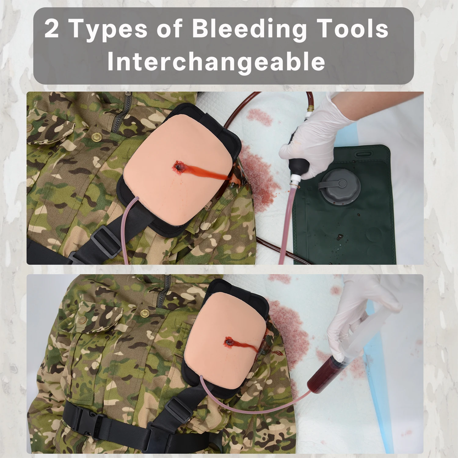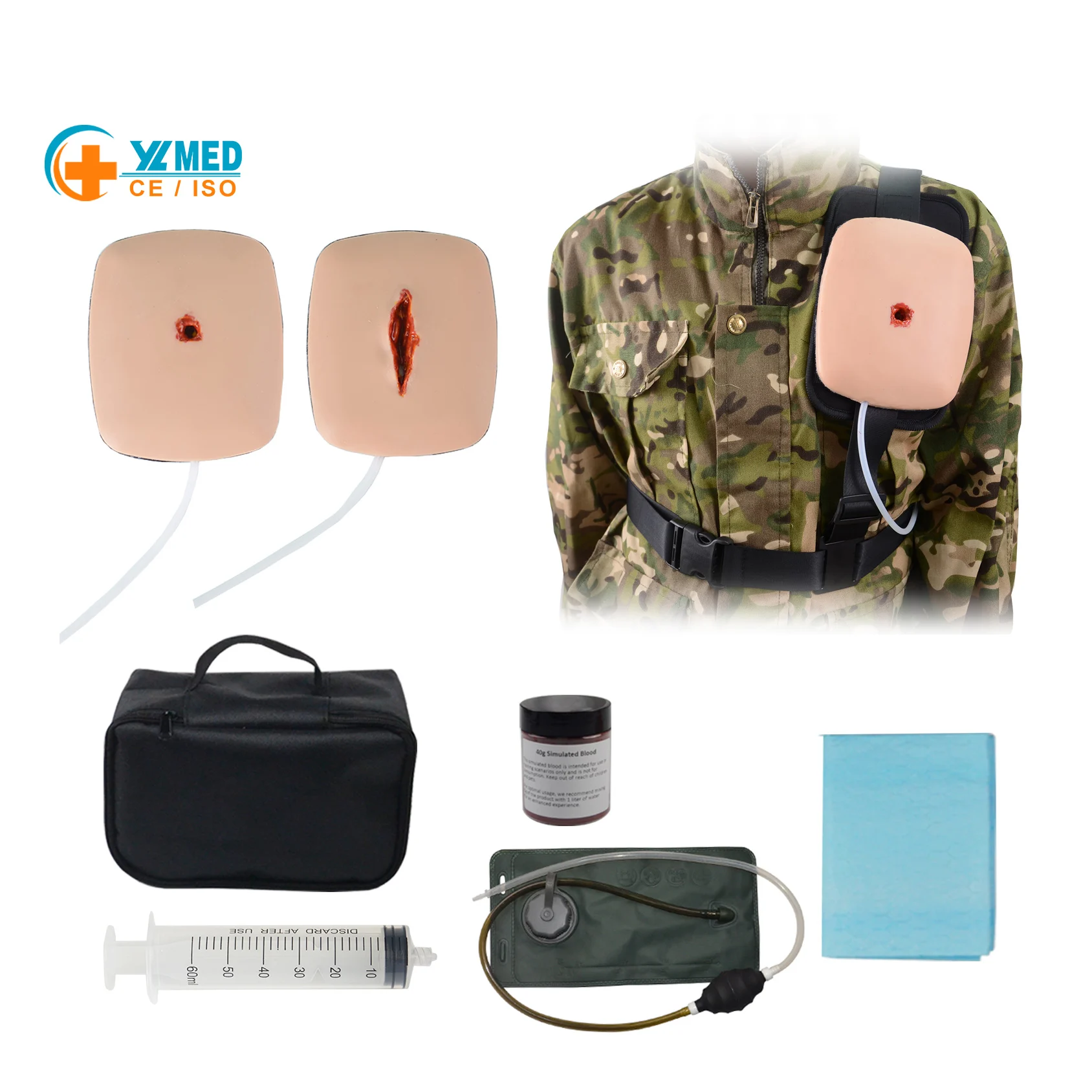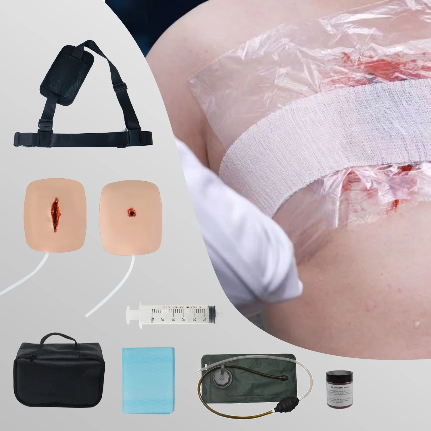 This wearable trauma and hemostasis training module features dual simulated wounds (gunshot wounds and lacerations), and includes a reusable simulated blood vessel, pressurized blood bag, syringe, and a complete portable storage bag. The silicone simulated skin replicates realistic human skin texture. The wound scenarios closely resemble real-world emergency medical situations. It can be repeatedly infused with water to simulate dynamic bleeding, comprehensively covering the entire process of bandaging, hemostasis, and wound management. The complete set of accessories is durable and easy to clean, and the secure design allows for repeated practice by multiple people. It enhances trainees’ practical skills in wound management, hemostasis, and bandaging, improving the emergency medical care teaching system in educational institutions. This is an essential item for multiple scenarios in educational institutions and fire and emergency medical services. The complete set offers high profit margins, high accessory reuse rates, low after-sales losses, stable market repurchase rates, and expands the profit-generating category of emergency medical equipment. The emergency medical equipment uses a universal standard structure. The wound simulation and circulating bleeding structure have been validated through industry teaching and training, making it compatible with domestic and international emergency medical training systems. Complete sets are available for immediate delivery.