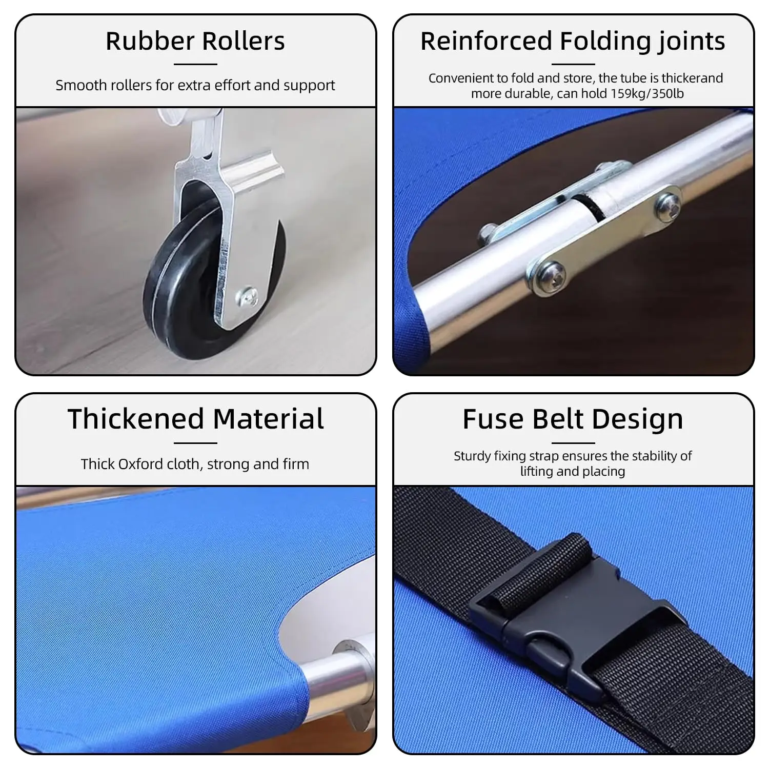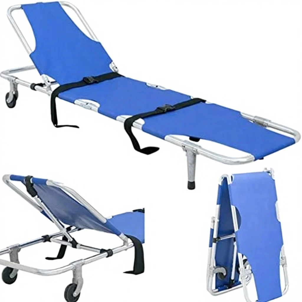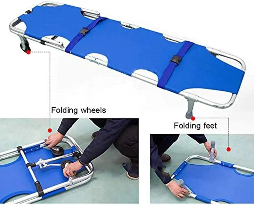 * Safety Design: Equipped with two safety belts on the chest and legs for secure patient stabilization during transport.