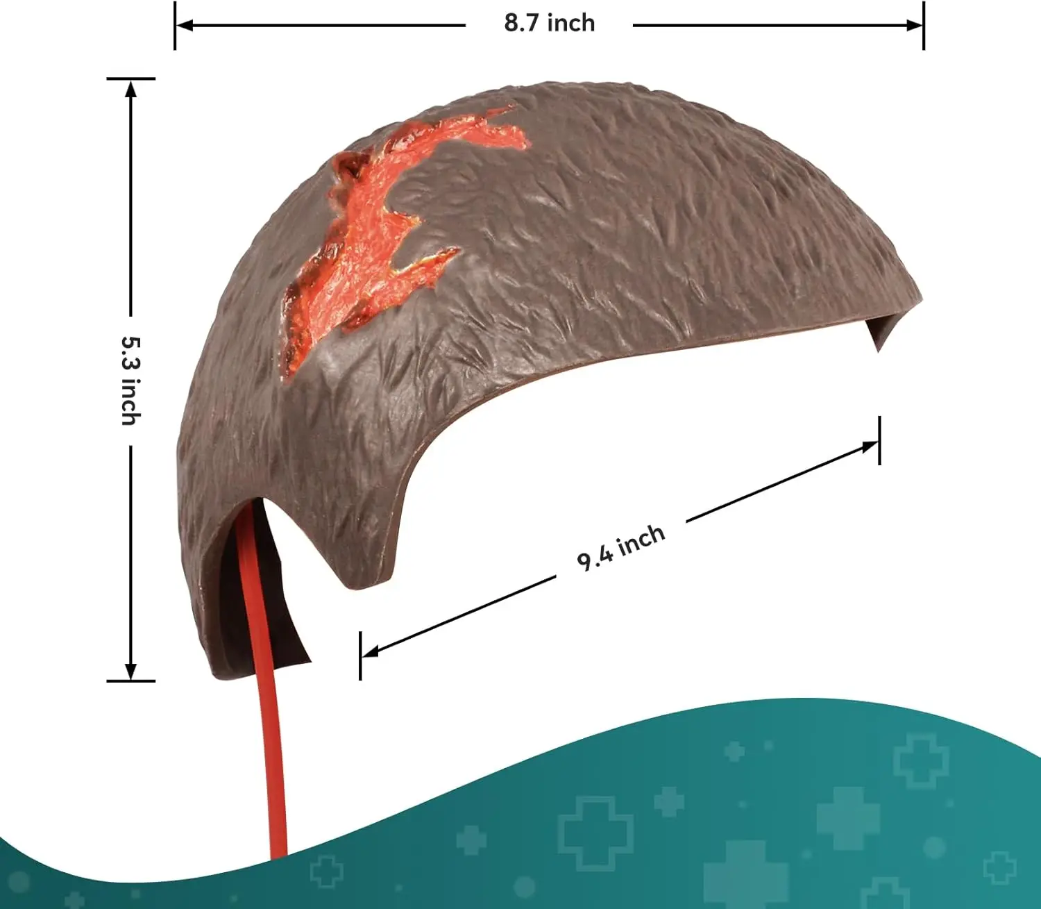 * Realistic Head Injury Simulation – This wound trainer realistically displays various injuries such as scalp lacerations and exposed bones, providing a lifelike training environment for wound packing and bleeding control practice