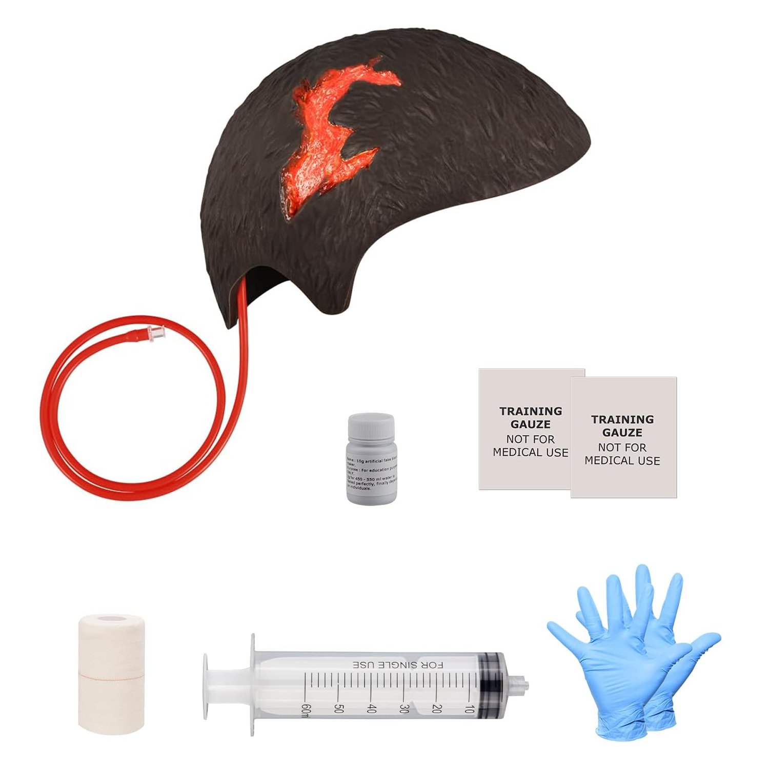 * Realistic Head Injury Simulation – This wound trainer realistically displays various injuries such as scalp lacerations and exposed bones, providing a lifelike training environment for wound packing and bleeding control practice